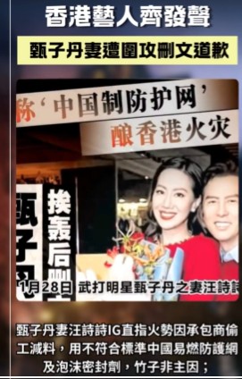 10.【香港艺人齐发声 甄子丹妻遭围攻删文道歉】