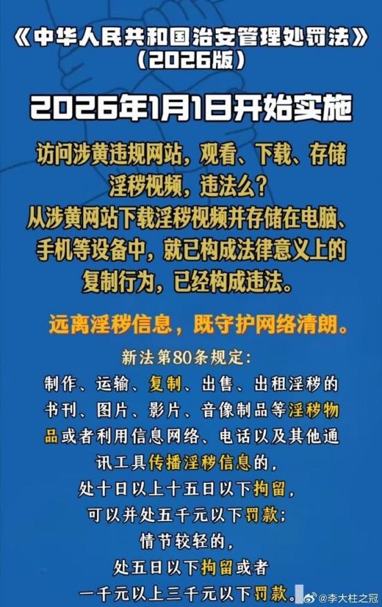 新法第80条规定:制作、运输、复制、出售、出租淫秽的书刊、图片、影片、音像制品等淫秽物品或者利用信息网络、电话以及其他通讯工具传播淫秽信息的,处十日以上十五日以下拘留,可以并处五千元以下罚款:情节较轻的,处五日以下拘留或者一千元以上三千元以下罚款。